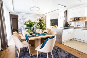 A világos és nagyon dekoratív nappali igényes alapanyagokból, tapasztalt szakemberek munkája révén valósul meg.